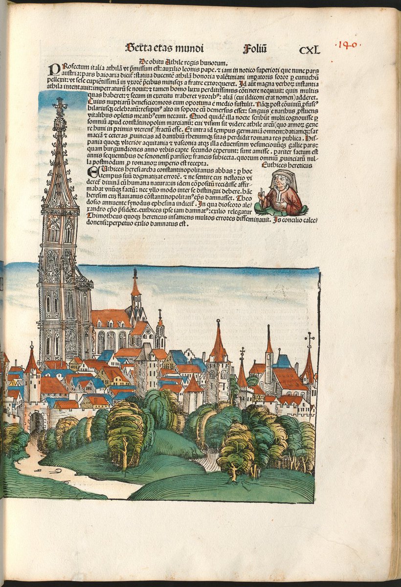 La Chronique de Nuremberg occupe une place centrale dans l’histoire du livre imprimé et constitue un chef-d’œuvre exceptionnel que le numérique vous offre de feuilleter depuis chez vous, par exemple dans les collections de la @WDLorg : https://www.wdl.org/fr/item/4108/