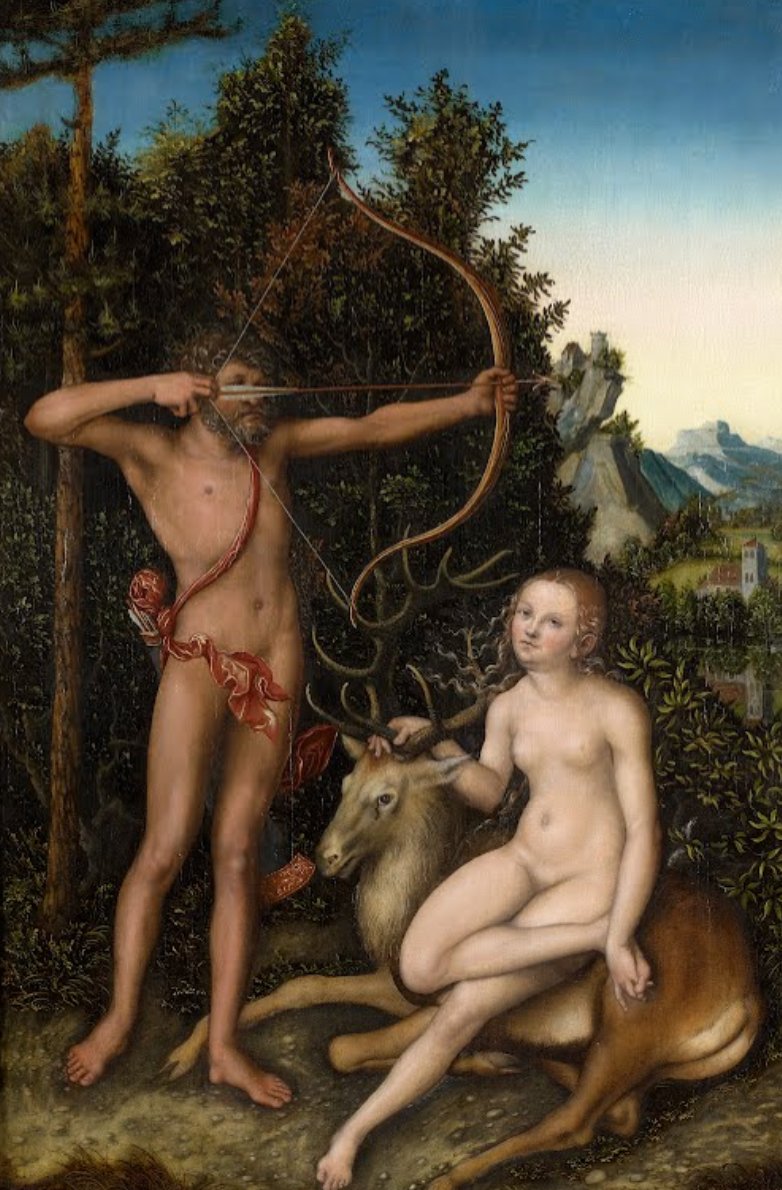 2. La Lune 🌕 est souvent associée et opposée au Soleil 🌞, sous une forme relativement réaliste malgré la personnification dans cette encyclopédie du Mexique d'avant la colonisation espagnole, ou sous une forme mythologique – Apollon et Diane – chez Cranach l'Ancien.
