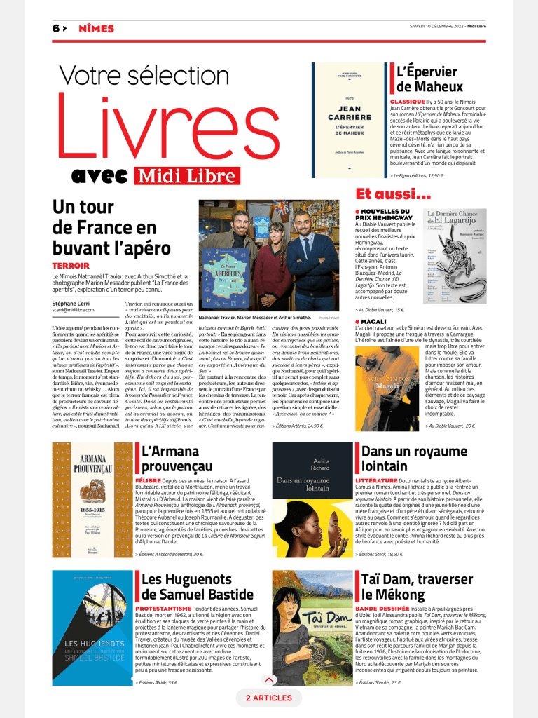 - La France des Apéritifs est dans la sélection Livres du Midi Libre du 10 décembre 2022