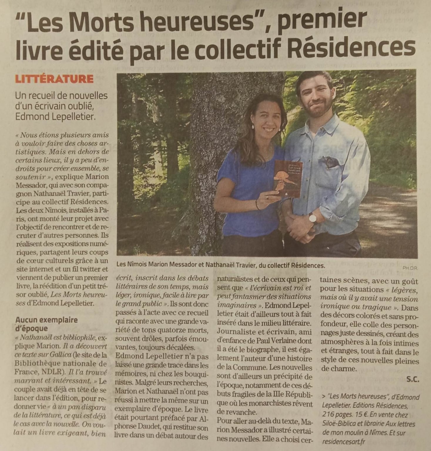 - Les Morts heureuses sont dans le Midi Libre du 15 juin 2021